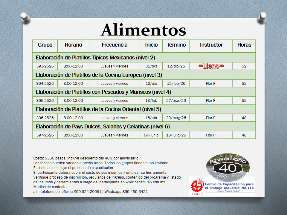 Solicite su ficha de pago directamente en el plantel o vía whatsapp al 899.459.6421; realice su pago en banco o vía transferencia electrónica (por favor consulte disponibilidad de lugares antes de realizar su pago, todos los grupos tienen cupo limitado. El realizar un pago NO implica estar inscrito)