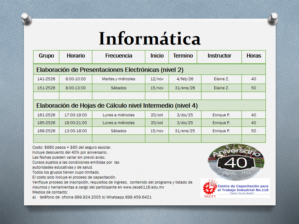 Solicite su ficha de pago directamente en el plantel o vía whatsapp al 899.459.6421; realice su pago en banco o vía transferencia electrónica (por favor consulte disponibilidad de lugares antes de realizar su pago, todos los grupos tienen cupo limitado. El realizar un pago NO implica estar inscrito)