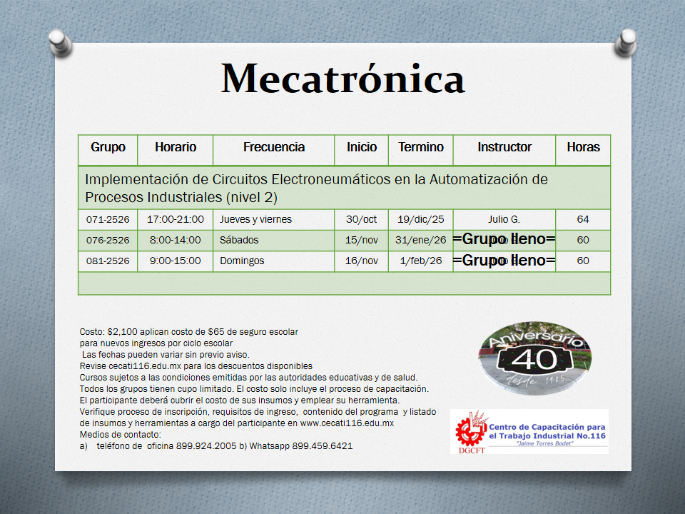 Solicite su ficha de pago directamente en el plantel o vía whatsapp al 899.459.6421; realice su pago en banco o vía transferencia electrónica (por favor consulte disponibilidad de lugares antes de realizar su pago, todos los grupos tienen cupo limitado. El realizar un pago NO implica estar inscrito)