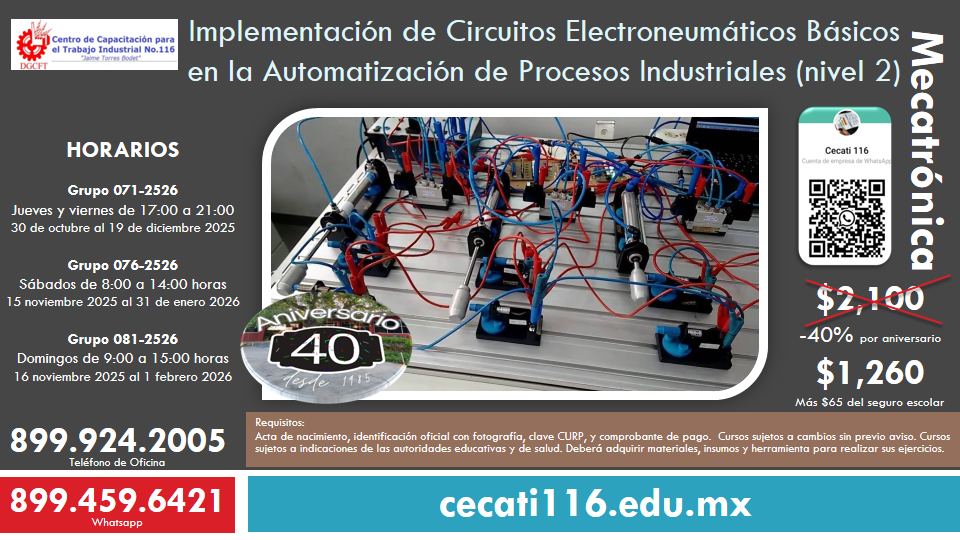 El alto impacto que genera la industria en la región, especialmente las industrias que requieren de la automatización como un medio de mejorar la eficiencia de operación al aumentar la productividad, ha obligado a la especialización de los profesionistas, técnicos y operarios de la industria, específicamente en ramas de la electrónica, electricidad, neumática y PLC..